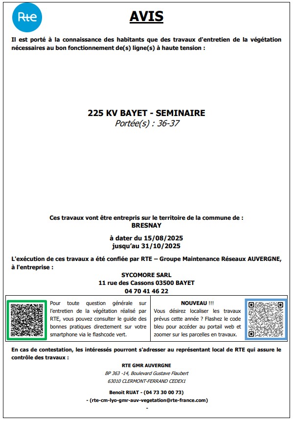 Avis travaux élagage RTE ligne