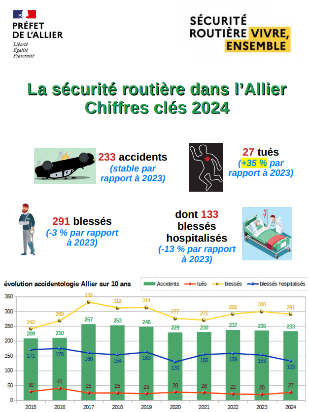 La sécurité routière dans l’Allier Chiffres clés 2024 :