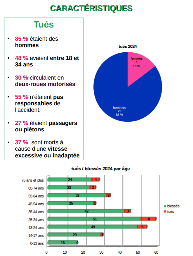 233 accidents (stable par rapport à 2023) mais 27 tués (+35 % par rapport à 2023)