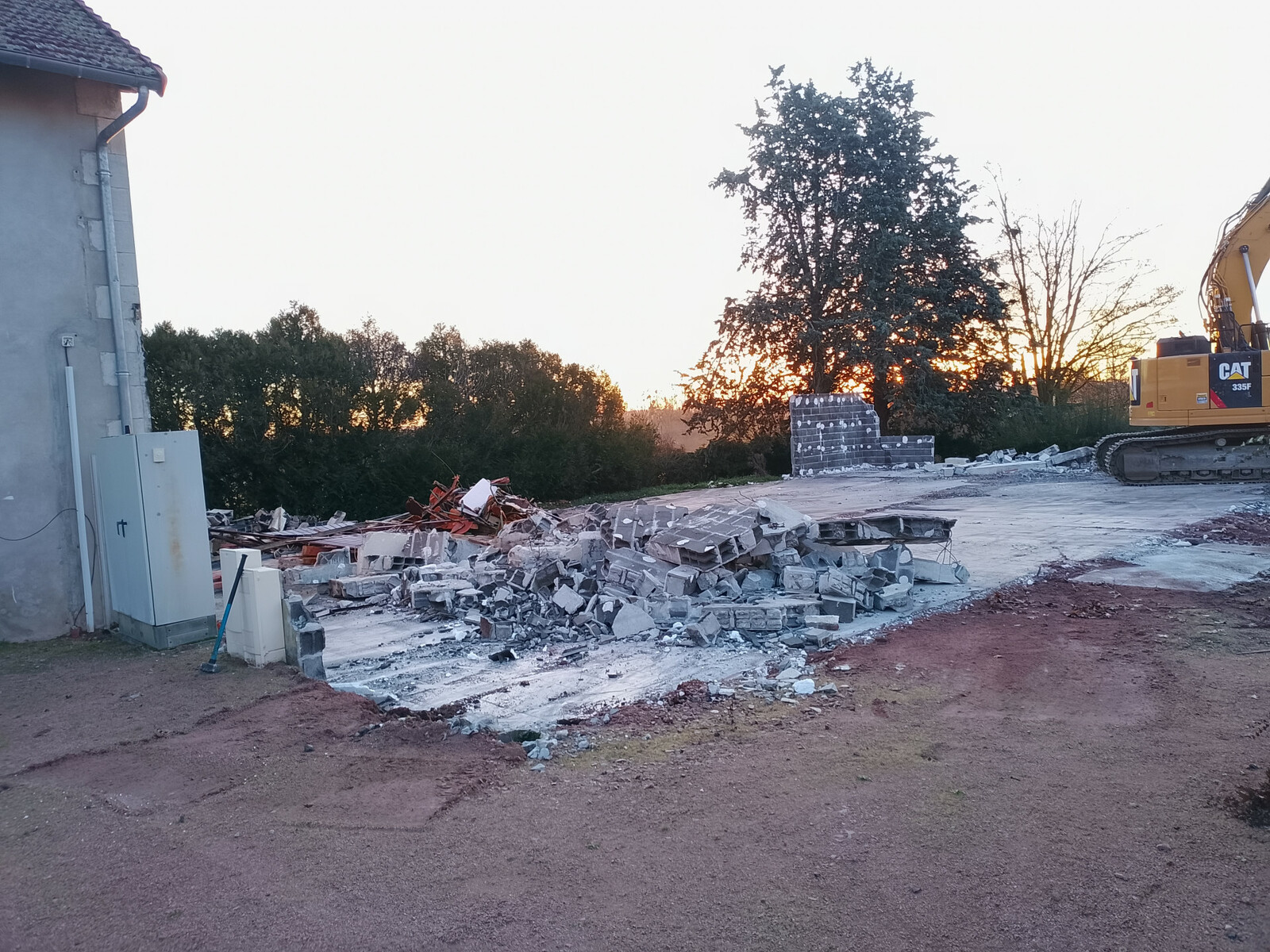 Après 5 jours, nous voici au bout de la démolition, le retrait des dalles a pris un peu de retard en raison de la necessité de retirer à la main l'isolant qui était présent sous la dalle de la partie la plus récente de la salle. Maintenant, il reste quelques gravats à évacuer et nous serons au bout de cette phase...